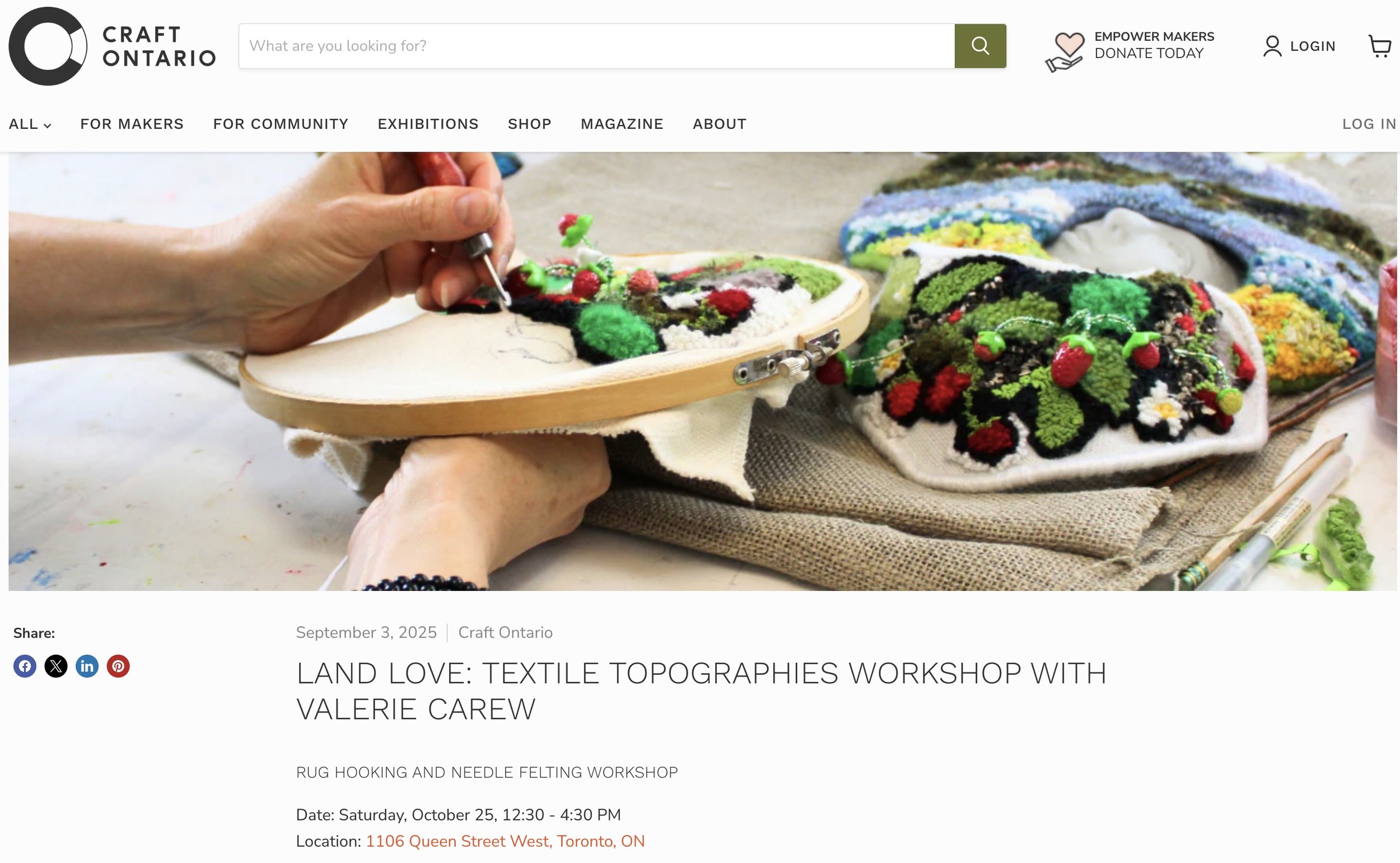 Land Love: Textile Topographies Workshop at the Craft Ontario Shop